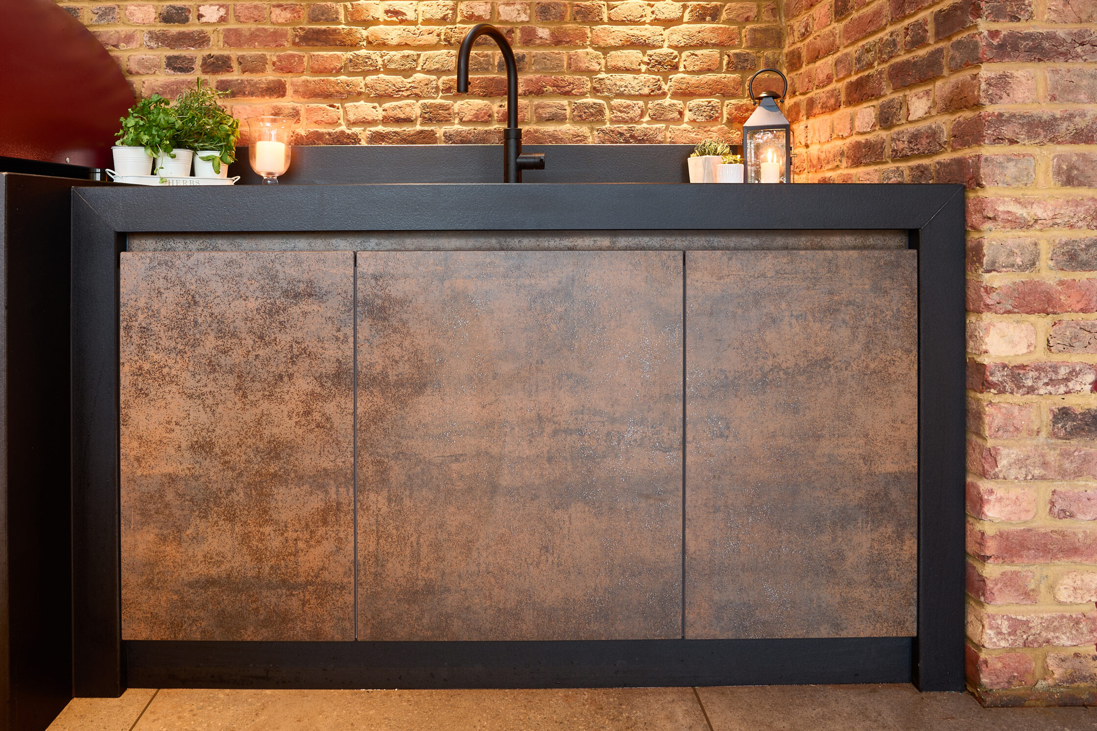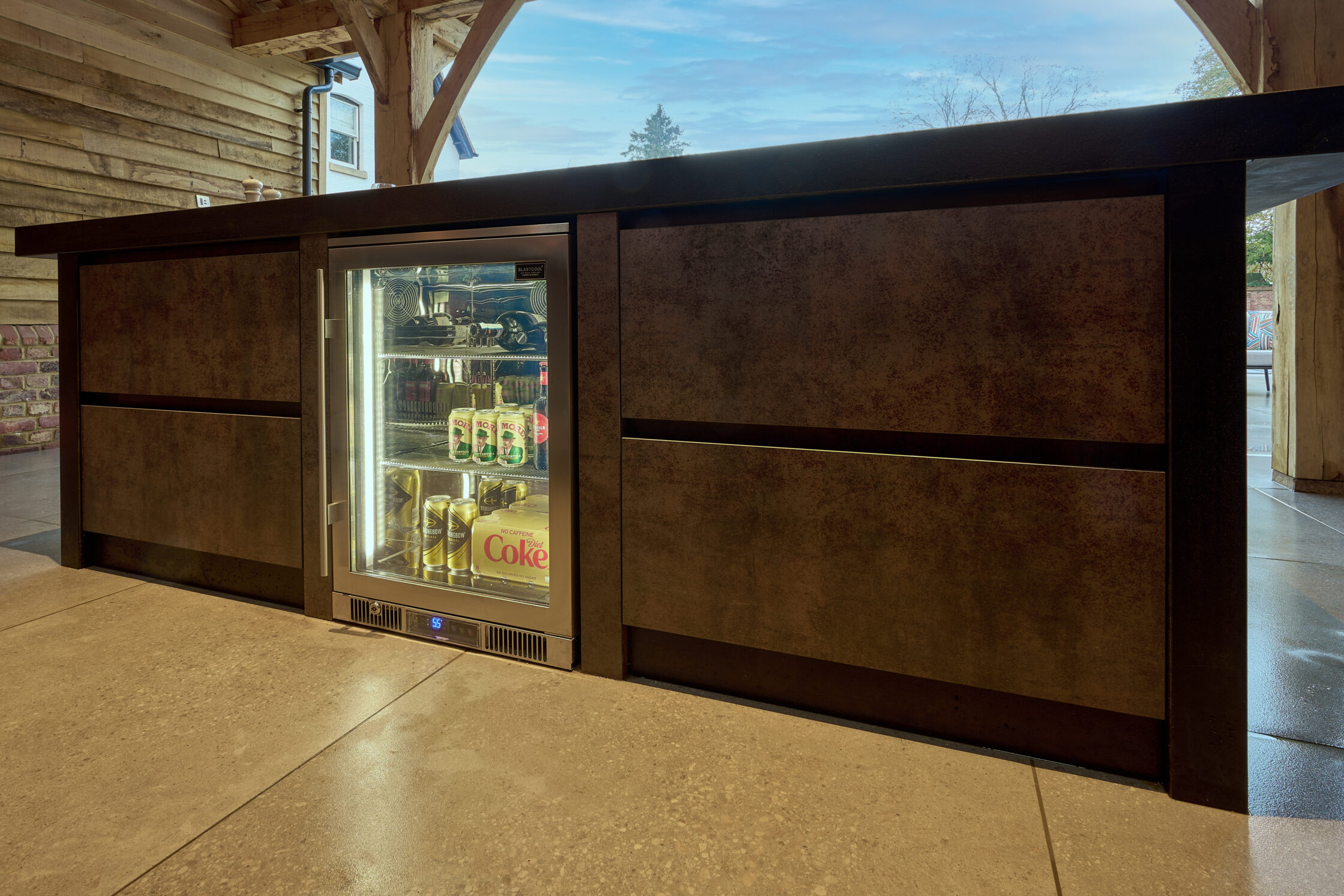 This kitchen really showcases the bespoke nature and quality of a KönigOutdoor kitchen. Our design teams collaborated with Stevens Design to form details such as molding the worktop around the Kamado Joe grill. It also encouraged us to expand our offering as we had to create external drawer packs, a stone-faced handle-less channelling for the doors and drawers, as well as provide a safe solution for an external power socket in an island unit.