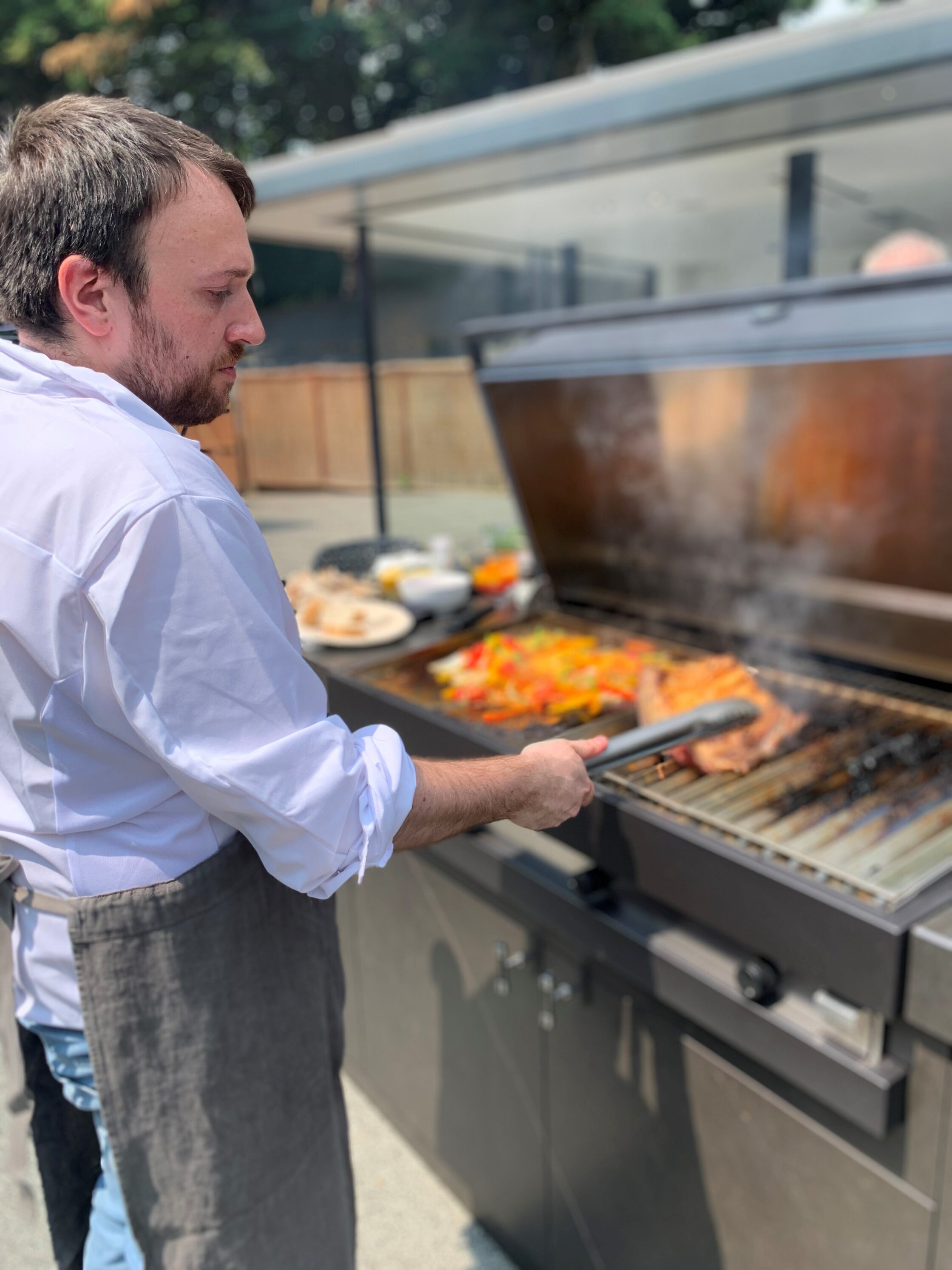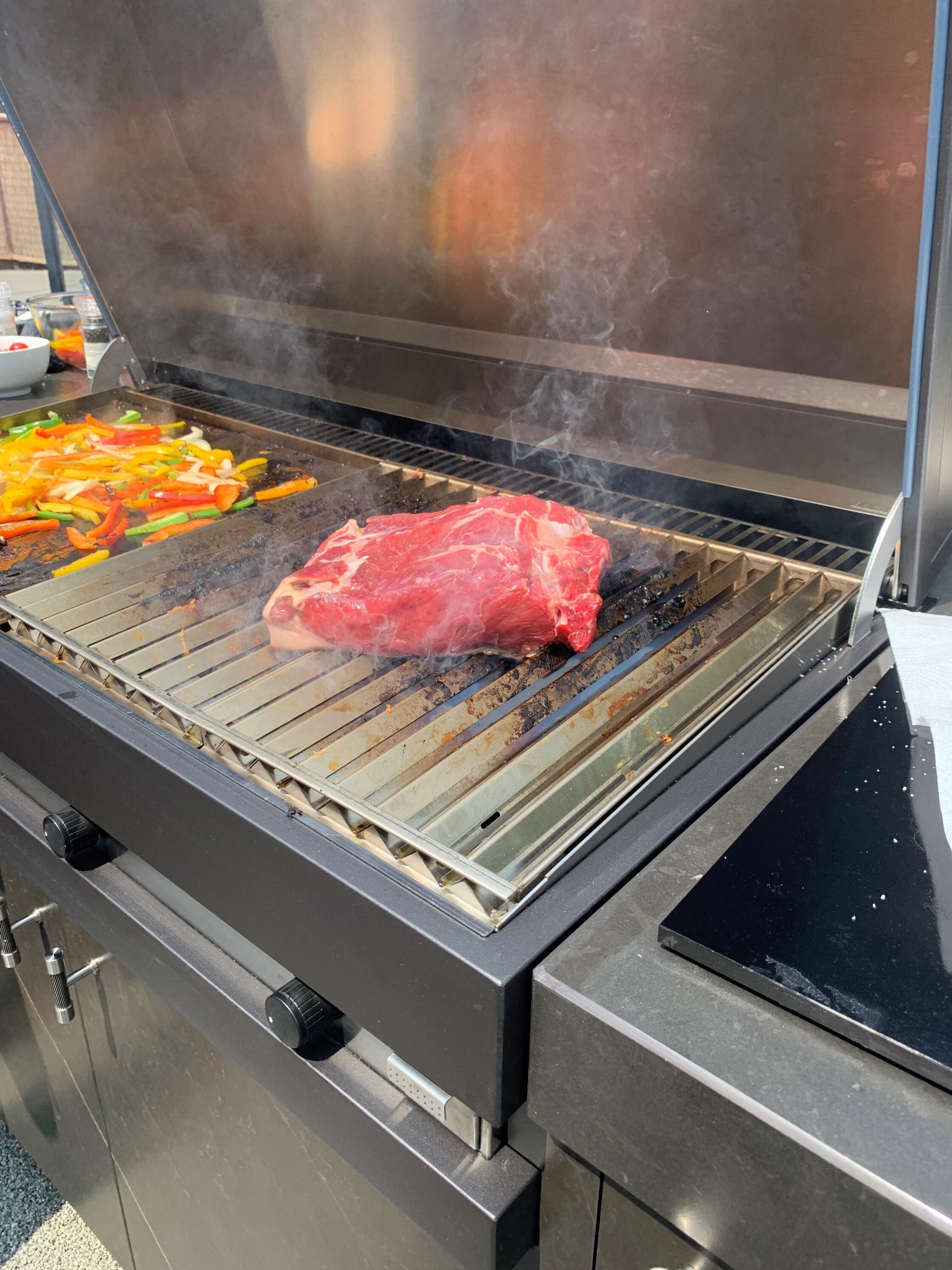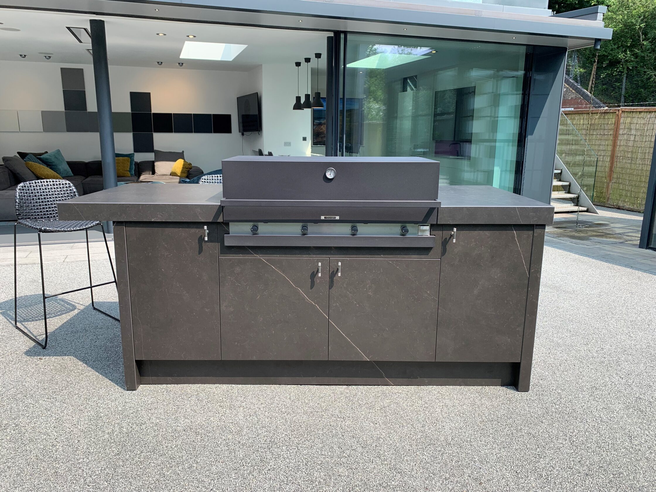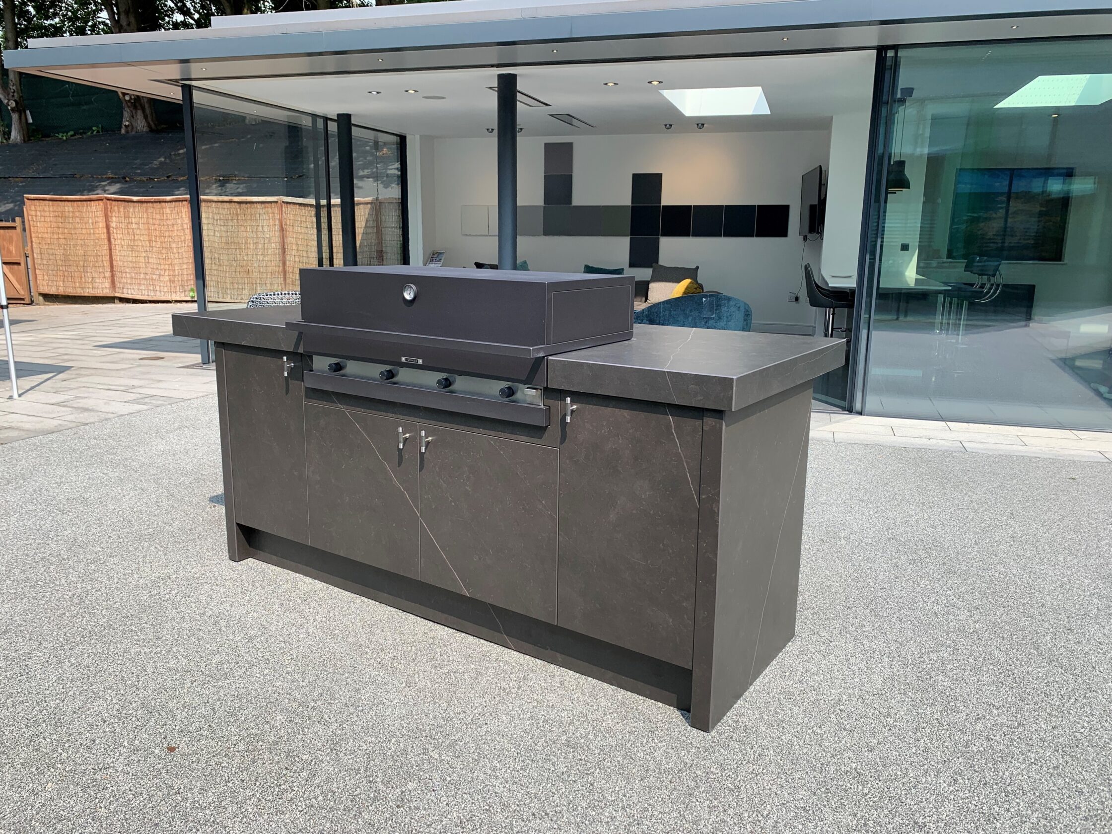 The built-in grill is the Fogher FGA 1000 which features a sleek black exterior made from painted aluminised sheet metal over a central core of stainless steel. Additional accessories compatible with the high lid version of this grill allow you to create a multitude of dishes including a baking kit for pizza and bread, soapstone for delicate meat, fish and vegetables and smoker kit for lower temperature cooking over wood chips.